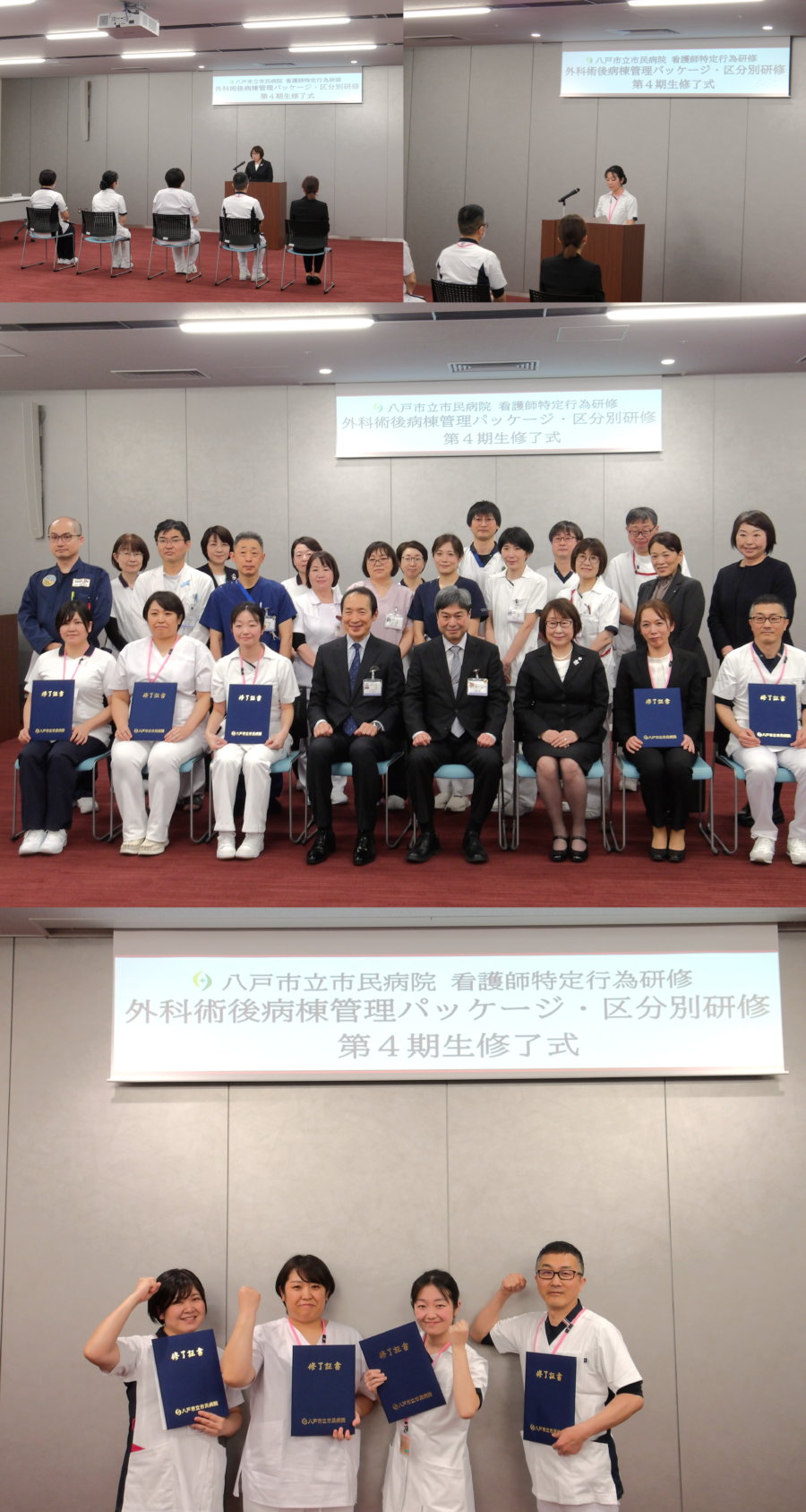 青森県看護協会会長様、国立病院機構八戸病院看護部長様ご臨席のもと、看護師特定行為研修外科術後領域パッケージ・区分別研修第4期生の修了式が挙行されました。